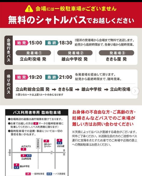 🚗 会場周辺は交通規制あり!駐車場はございません。